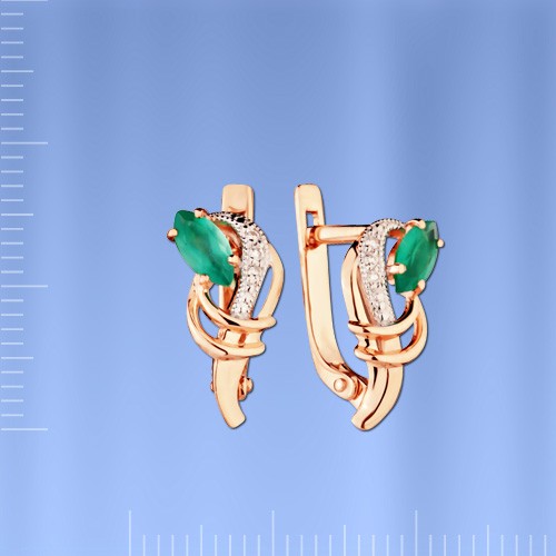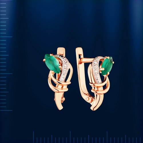 Золотые серьги с бриллиантами и хризопразом