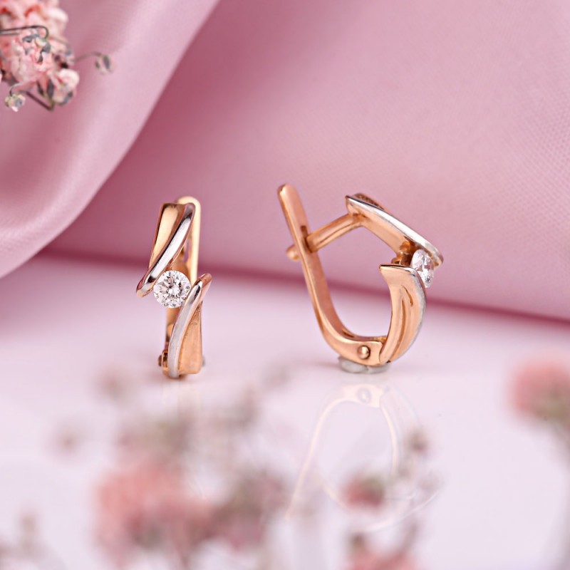 Элегантные золотые серьги из белого/красного золота 585 пробы с бриллиантами.