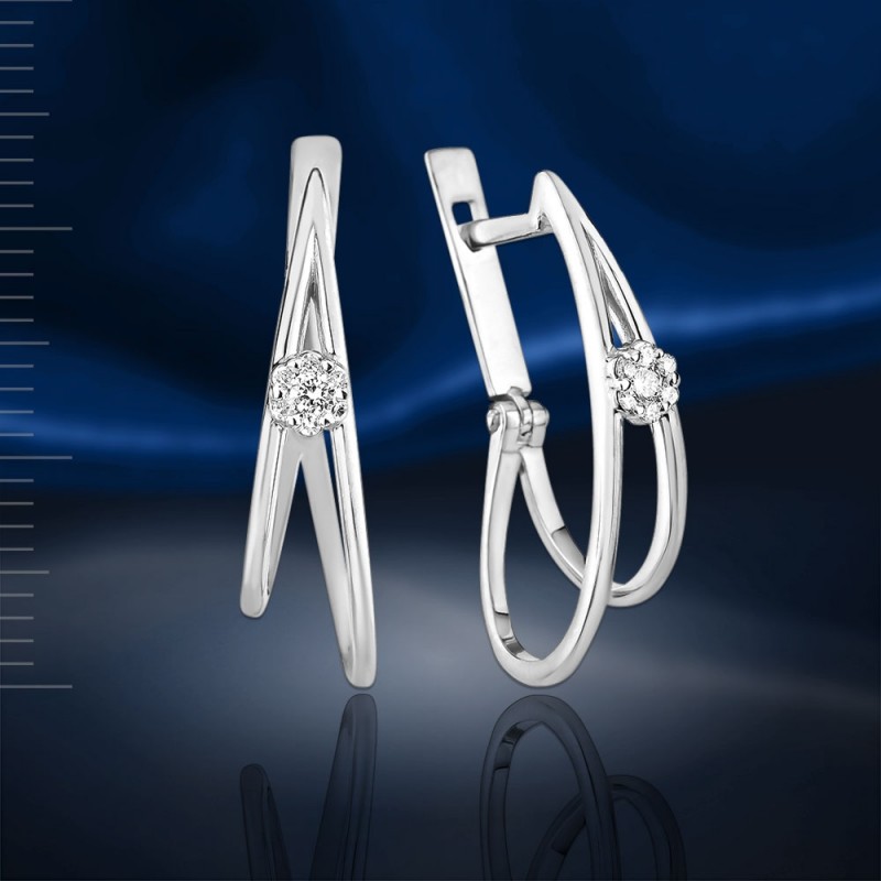 Очаровательные серьги из белого российского золота 585 пробы, украшенные бриллиантами.