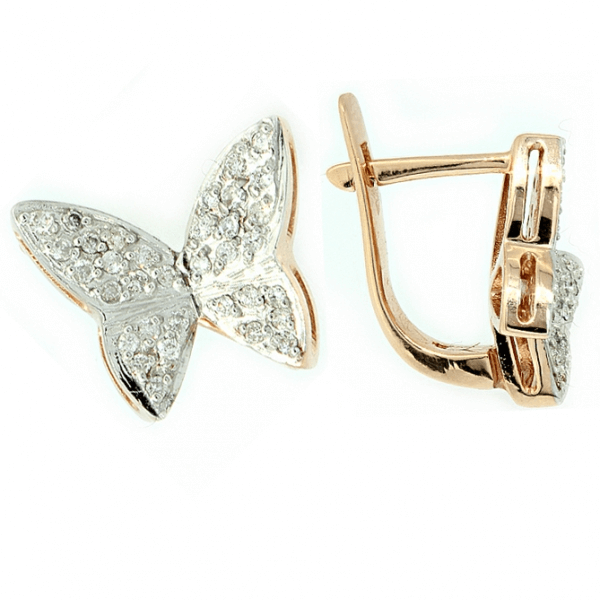 Серьги из красного золота с бриллиантами.