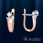Серьги из русского красного золота 585º в сочетании с белым золотом. Серьги с 2 бриллиантами 0,16 карата
