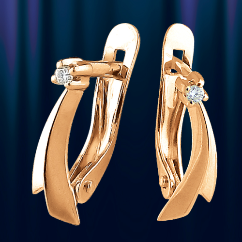 TOPAZ - Костромская ювелирная фабрика Серьги из русского красного золота 585°. Серьги с 2 бриллиантами 0,024 карата.