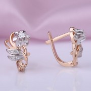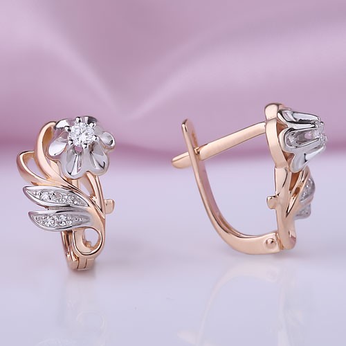 Серьги из российского красного/белого золота 585° с 2 бриллиантами классической огранки 0,094 карата 3/6А кр-57(H), 10 бриллиантами классической огранки 0,028 карата 3/6А кр-17(H)