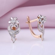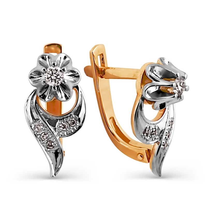 Серьги из российского красного/белого золота 585° с 2 бриллиантами классической огранки 0,094 карата 3/6А кр-57(H), 10 бриллиантами классической огранки 0,028 карата 3/6А кр-17(H)