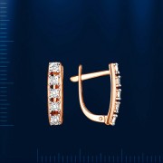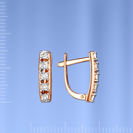 Серьги из русского красного золота 585º с 10 бриллиантами классической огранки 0,036 карата. Высота ок. 13 мм