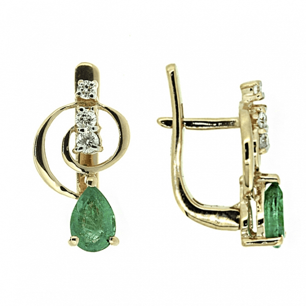 Золотые серьги с изумрудами и бриллиантами