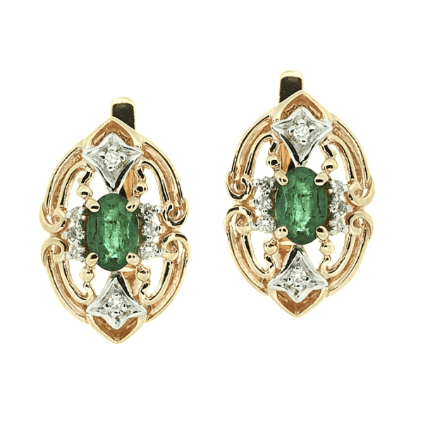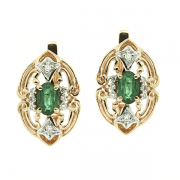 Золотые серьги с изумрудами и бриллиантами