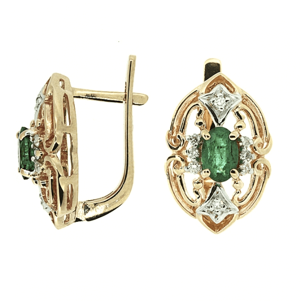 Изысканные серьги из красного золота с изумрудами и бриллиантами.