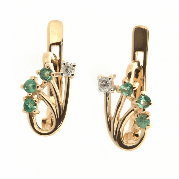 Золотые серьги с изумрудами и бриллиантами
