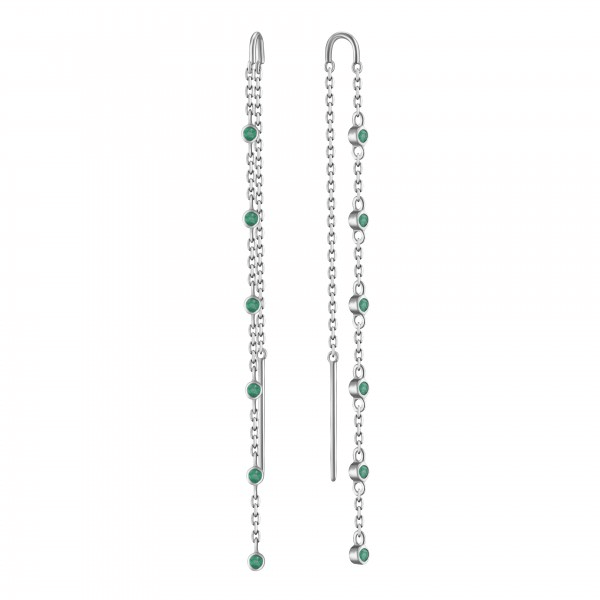 Изящные серьги-цепочки из белого золота с изумрудами