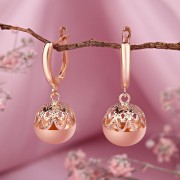 Красивые золотые серьги из красного золота 585 пробы с филигранью.