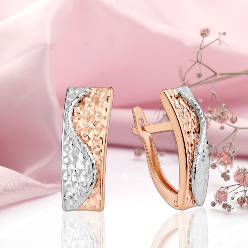 Элегантные, очаровательные серьги из белого/розового золота 585 пробы с бриллиантовой огранкой. Эти ослепительные серьги поразят вас красотой и элегантностью.