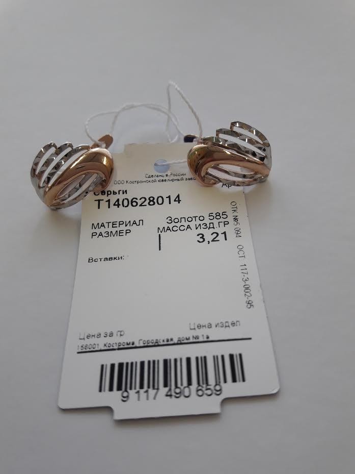 | Опасности: | Серьги Золотые без Камней не предназначены для детей до 3 лет. Опасность удушья от проглатываемых мелких деталей. Не носить при физической работе, занятиях спортом, плавании, сне - опасность потери мочки уха, опасность повреждения продуктов. Пожалуйста, используйте с осторожностью, чтобы избежать зацепления или повреждения продукта. |