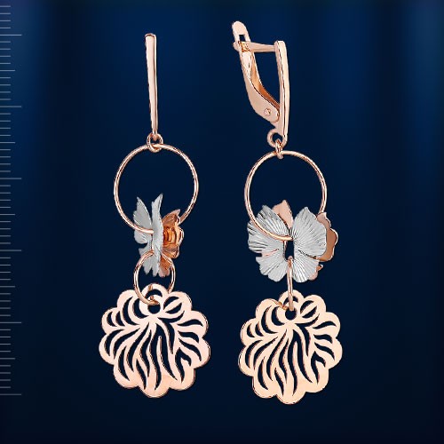 Серьги из красного золота 585°. Эти ослепительные серьги порадуют вас красотой и элегантностью. С безопасным и надежным замком.