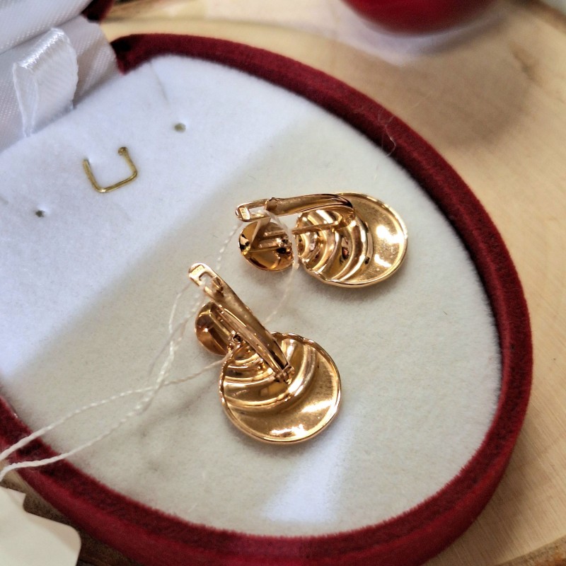 красного золота 585 пробы. Красивые золотые серьги из