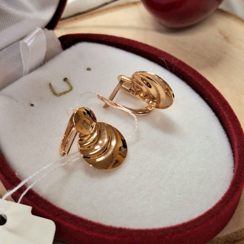 красного золота 585 пробы с зеркальной поверхностью. Если вы хотите подчеркнуть в своей спутнице ее женственность, грацию, улыбку и красоту, то такой подарок как раз для вас. Эти серьги прекрасно сочетаются с любым образом, будь то повседневный или праздничный!