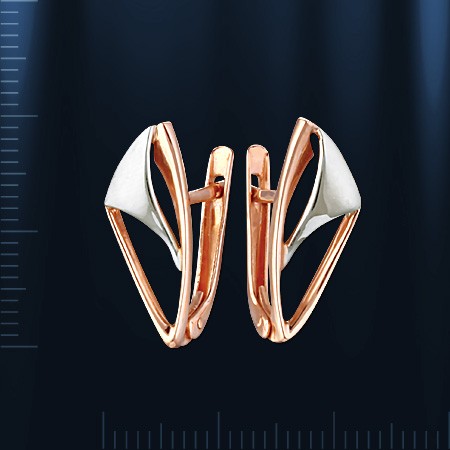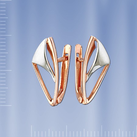 Серьги из русского золота 585 пробы, двухцветные. Высота ок. 20 мм.