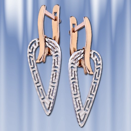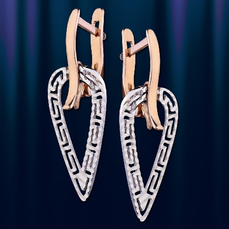 Серьги из русского золота 585 пробы, двухцветные. Длина около 30 мм