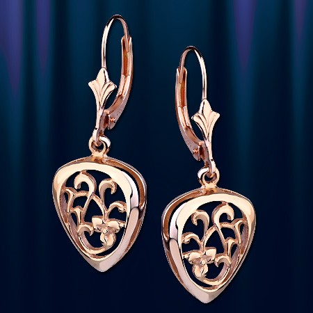 Серьги из русского красного золота 585º. Длина около 30 мм