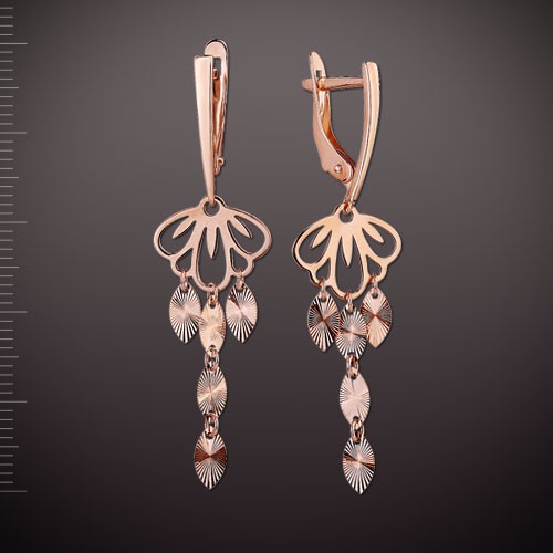 Серьги из красного золота 585°. Эти ослепительные серьги порадуют вас красотой и элегантностью. С безопасным и надежным замком.