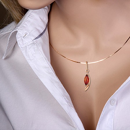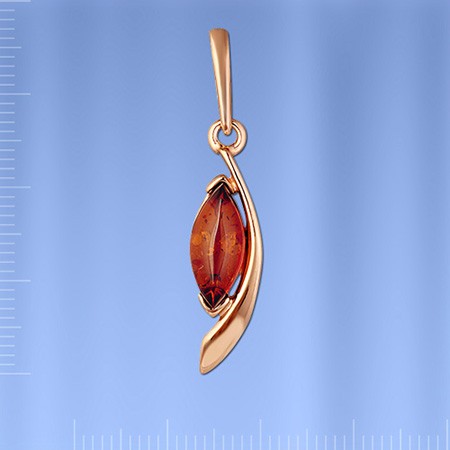 Кулон из русского золота 585 пробы с янтарем (14 х 6 мм). Длина с ушком около 37 мм. Ширина: около 8 мм.