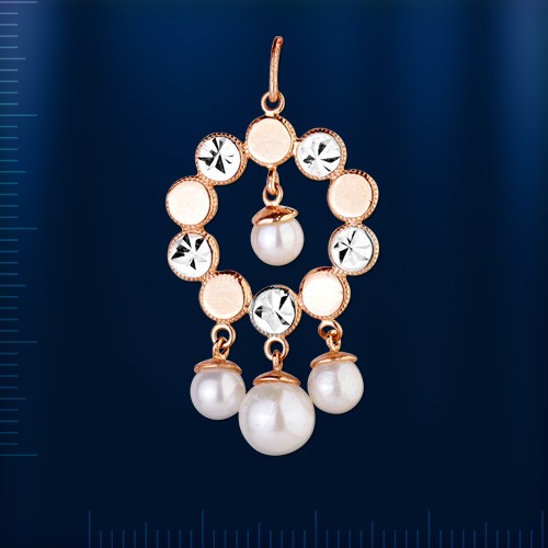 Кулон из массивного русского красного/белого золота 585° с жемчугом. Размеры кулона, высота с ушком 36,0 мм, ширина ок 20,0 мм, жемчуг (10 х 8 мм)