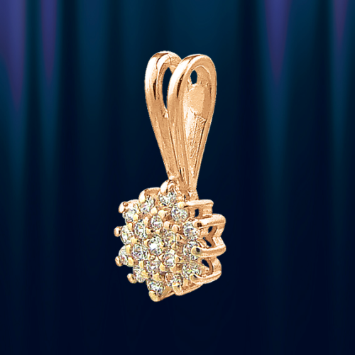 ESTET- Московский Ювелирный Завод Кулон из красного русского золота 585° с цирконами. Высота около 18 мм, ширина около 9 мм.