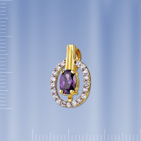 Кулон из российского желтого золота 585° с аметистом. Размеры кулона, высота с ушком около 18 мм, ширина около 12 мм, аметист (7 х 5 мм) и 19 цирконий Ø 1 мм.