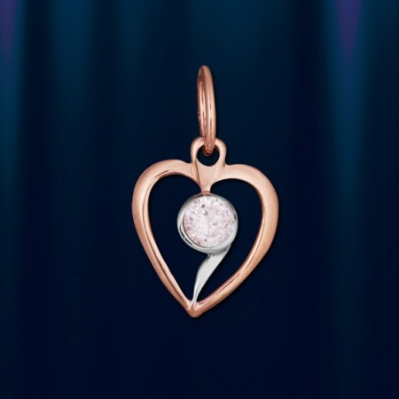 Кулон "Сердце" с цирконом. Золото 585 пробы, биколор