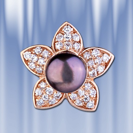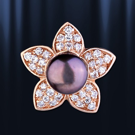 Подвеска из русского красного золота 585° с жемчугом и цирконием. Диаметр ок. 20 мм.