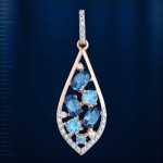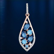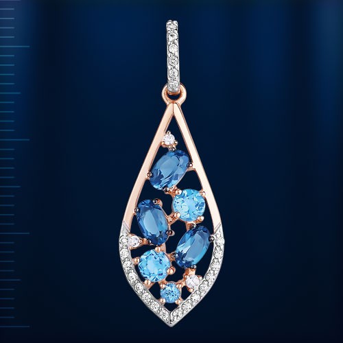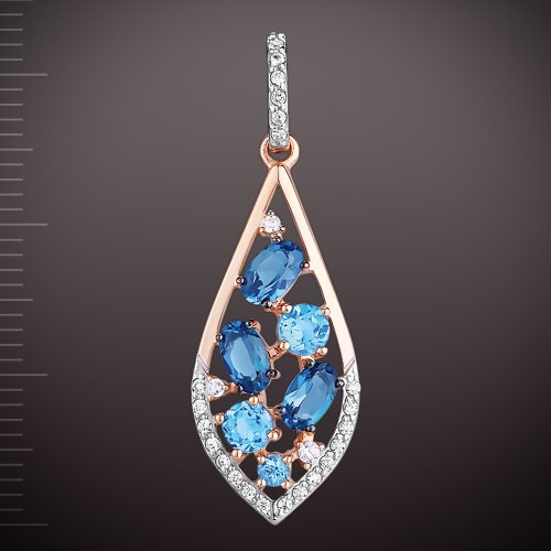 Подвеска из красного/белого золота 585°, украшенная 3 топазами Лондон (5,0 х 3,0 мм 0,5 карат), 1 топазом Лондон (¢ 2,25 мм 0,07 карат), 2 топазами Лондон (¢ 3,5 мм 0,3 карат), 23 фианитами ¢ 1,0 мм. , 2 фианита ¢ 1,25 мм и