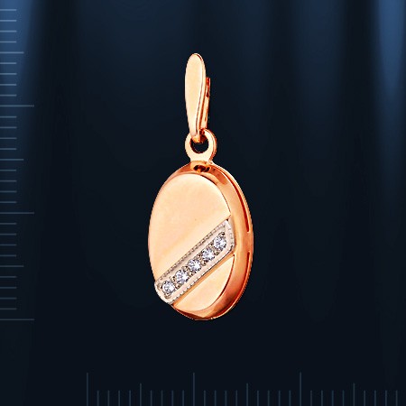 ESTET - Московская ювелирная фабрика Подвеска из русского красного золота 585°, украшенная фианитами ¢ 1 мм. Высота с ушком около 27 мм, ширина около 10 мм.