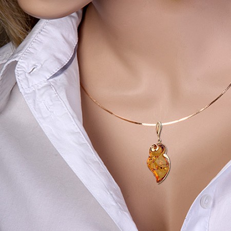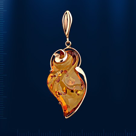 Кулон из русского золота 585 пробы с янтарем (33 х 18 х 6 мм). Длина с ушком около 55 мм. Ширина: ок. 20 мм.