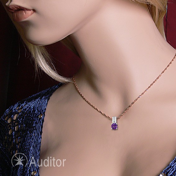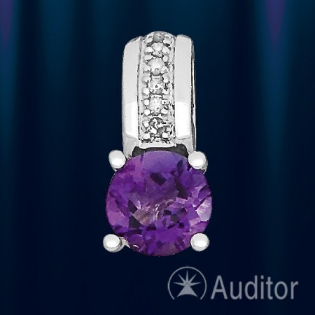 Подвеска из белого золота 585° с 6 бриллиантами (чистота: P3; 0,050 карата) и красивым аметистом.
