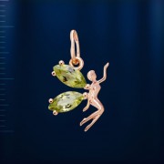 Кулон изготовлен из русского красного золота 585 пробы с 2 хризолитом 7,0 х 3,5 мм