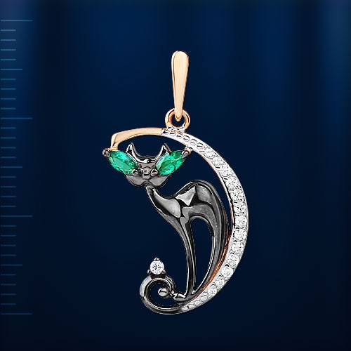 Подвеска из российского красного/белого золота 585° с 2 фианитами 4,0 х 2,0 мм зеленого цвета, 4 фианитами Ø 1,0 мм, 9 фианитами Ø 1,25 мм, 1 фианитом Ø 1,25 мм