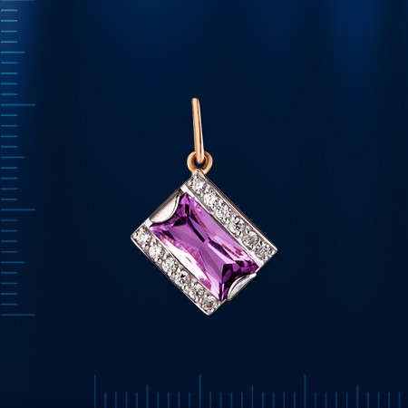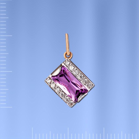 Кулон изготовлен из русского красного золота 585° с аметистом (10,0 x 5,0 мм 0,067 карата), 12 фианитов ¢ 1,5 мм. Высота с ушком ок. 22 мм