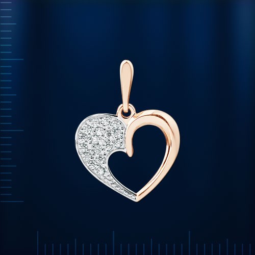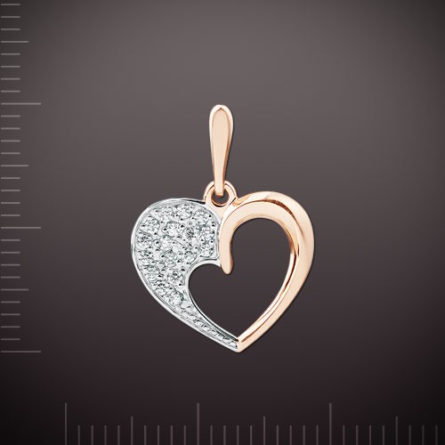 Кулон выполнен из российского красного/белого золота 585° с 17фианитов ¢ 1,25 мм. Высота с ушком ок. 22,0 мм