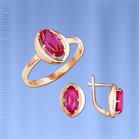 Установлено с помощью Корундовый рубинсостоит из серьг < /span>OR08237 и Кольцо R09227