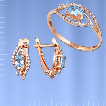 Набор русского Красное золото 585° с топазом< / span> состоит из серьг < span itemprop="mainContentOfPage"> и Кольцо