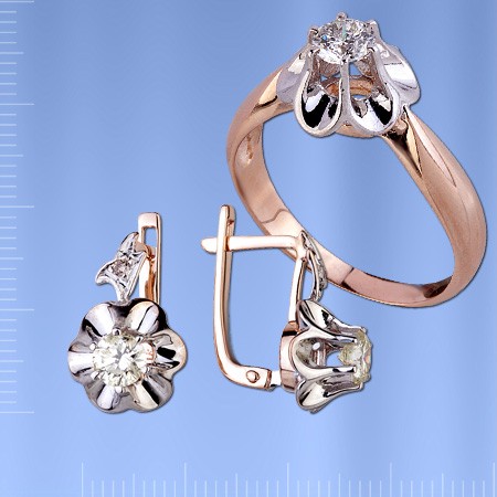 Комплект из русского красного/белого золота 585° с бриллиантами