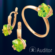 TOPAZ - Костромская ювелирная фабрика Комплект из русского красного золота 585° с хризолитом, состоит из кольца Р48923 и сережек ОР48930. Купите эти украшения в наборе и сэкономьте 10?