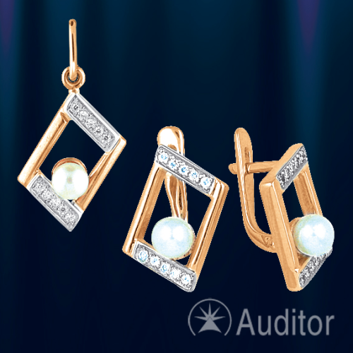Комплект из русского красного/белого золота 585° с жемчугом и цирконием. Комплект состоит из серег OR040567 и кулона A04023. Купите эти украшения в наборе и сэкономьте 15?