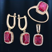 Комплект с рубинами. Желтое золото