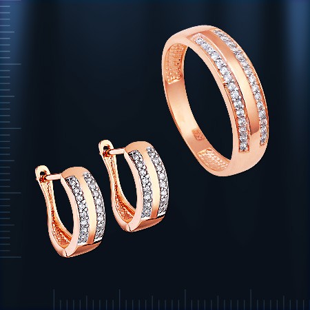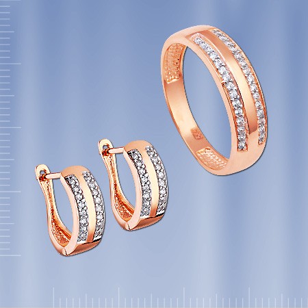 Комплект с фианитами. Красное золото