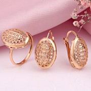 Русское золото в золотом наборе Германии. Элегантный комплект Zolotoy Berlin из красного золота 585°, украшенный бриллиантовой огранкой. Игра света и интересный узор, создаваемый обработкой бриллиантов, создают впечатление, что это изделие со вставками из настоящих бриллиантов. Комплект состоит из кольца и сережек.