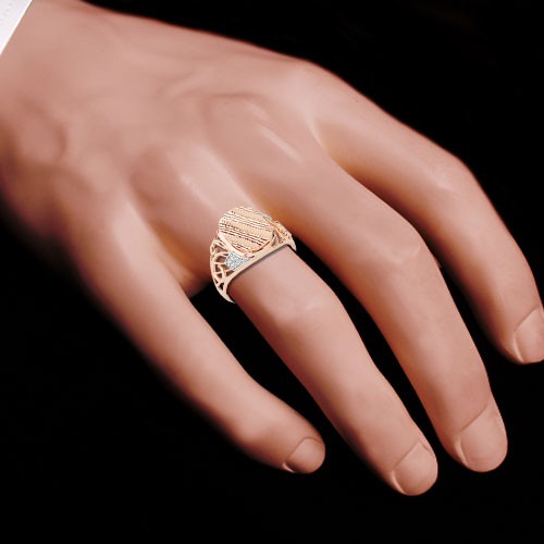 Стильное мужское кольцо из русского белого/красного золота 585°, с родиевым покрытием. Алмазная огранка! Украшен сверкающими фианитами и филигранью.