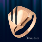 красного золота 585°, украшено черным ониксом. На внутренней закрытой поверхности кольца имеется клеймо пробы золота.