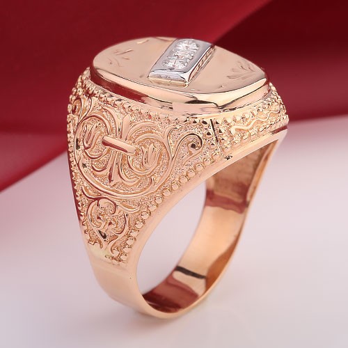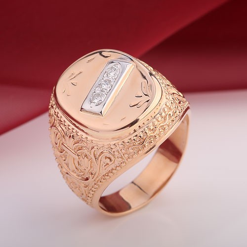 Мужское кольцо из русского красного/белого золота 585° с бриллиантами 030 карат