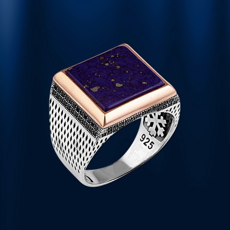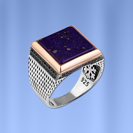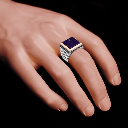 Мужское кольцо из серебра 925 пробы, украшенное каменем Лазури (15,0 х 15,0 см). Высота ок. 18,0 мм.
